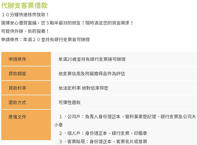 優質首選淡水支票換現金